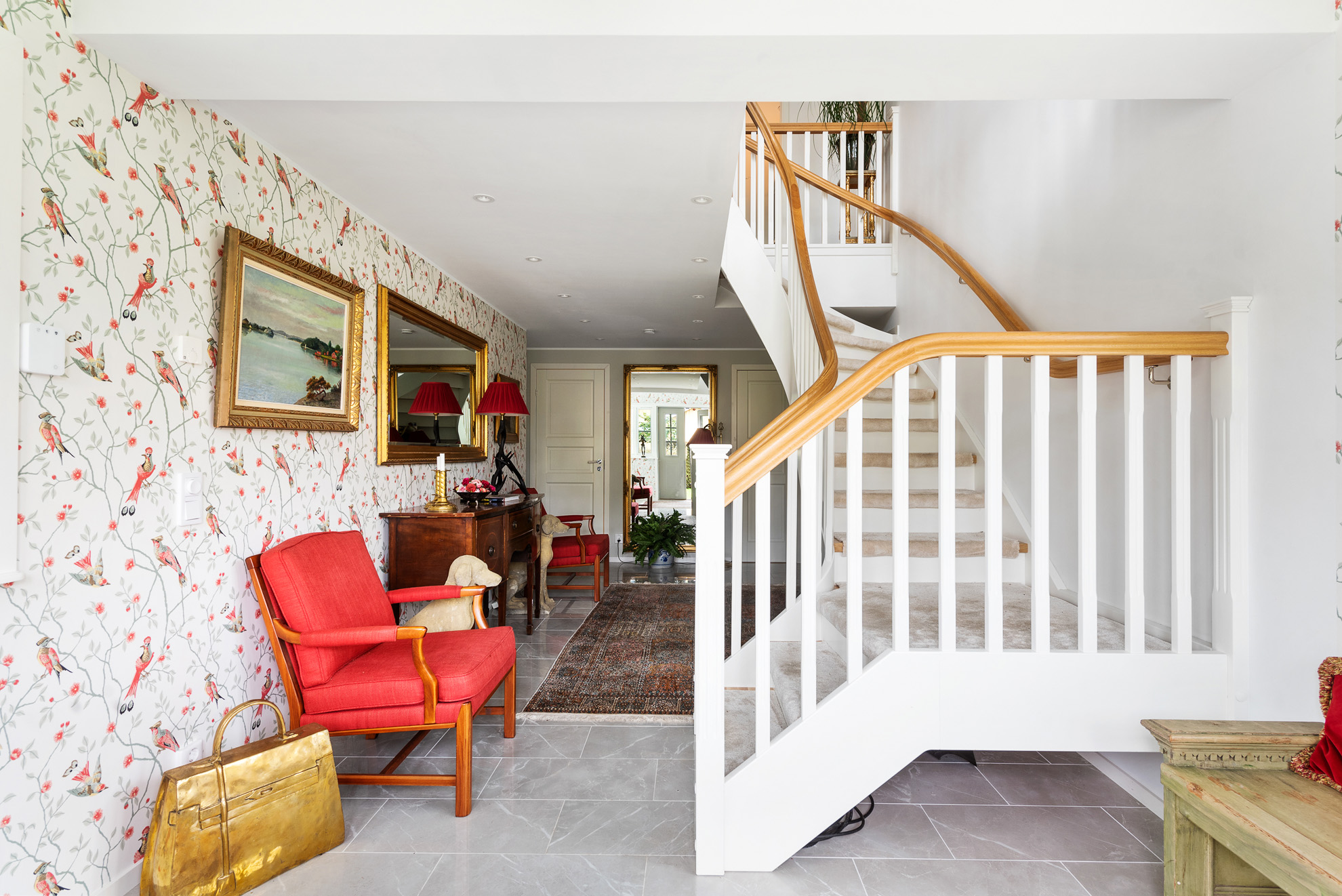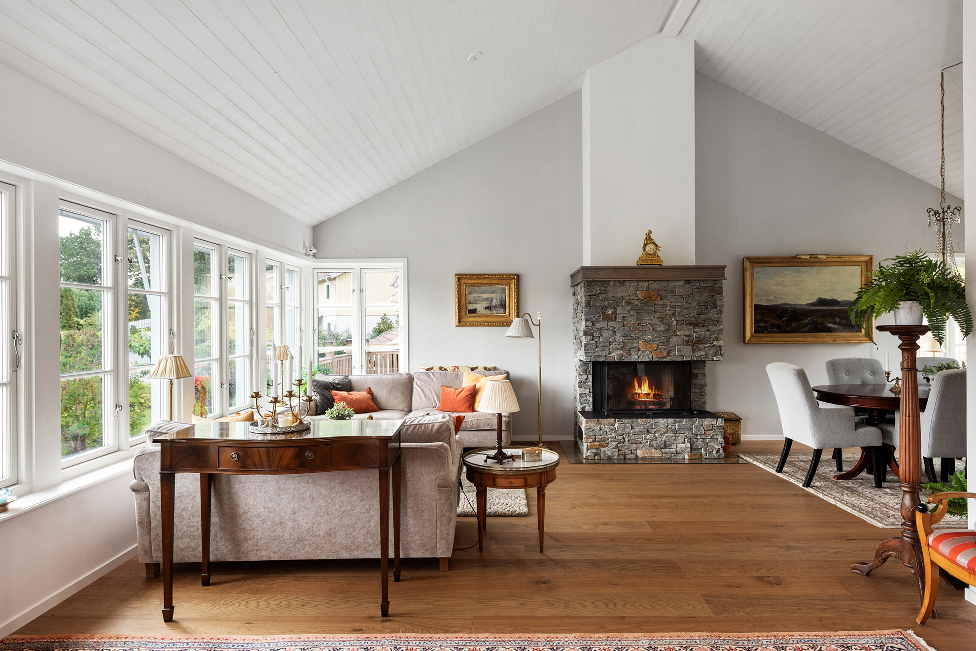 Planlösning: Vardagsrum med 4,4 meterstakhöjd, öppenspis, 4 sovrum, 3 sällskapsrum, hiss, bastu, 2 badrum och stor vinkällare. På husets baksida ligger en privat uppvärmd pool och insynsskyddad trädgård med bästa solläge. Mycket välisolerat hus och effektiv uppvärmning med bergvärme.