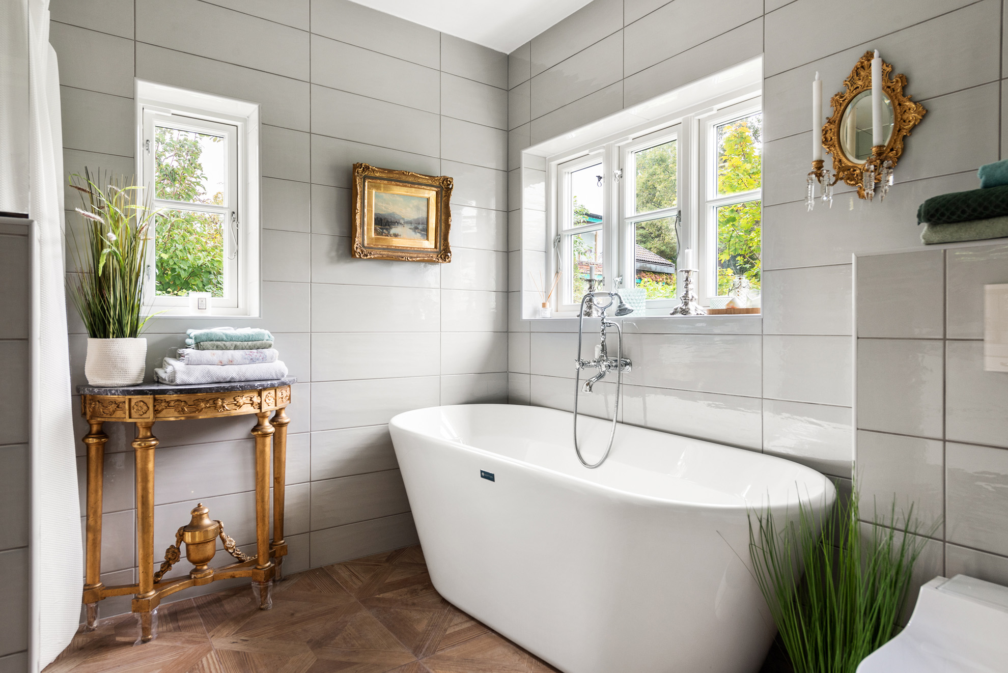 Badrum: Dusch, bad och bastu