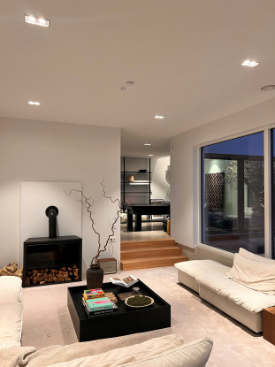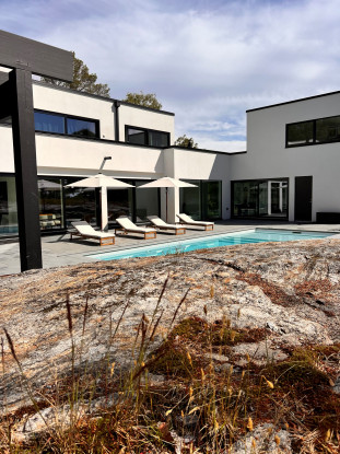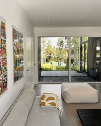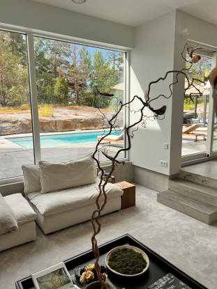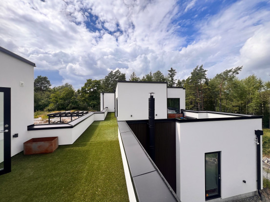 Villa om 359 kvm fördelat på två våningar med fyra sovrum belägen på Värmdö. Uthyres möblerad endast till företag.