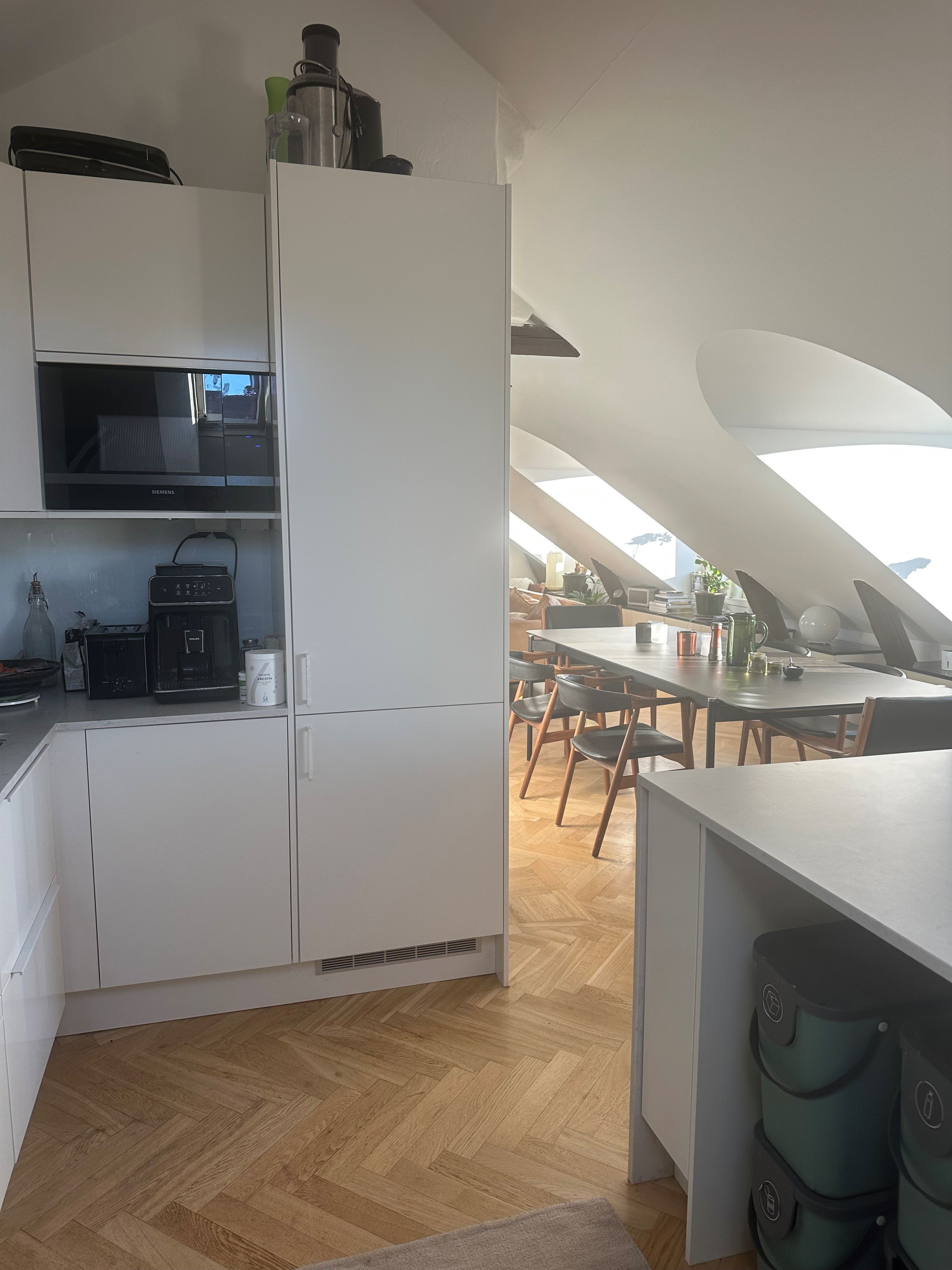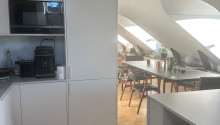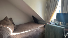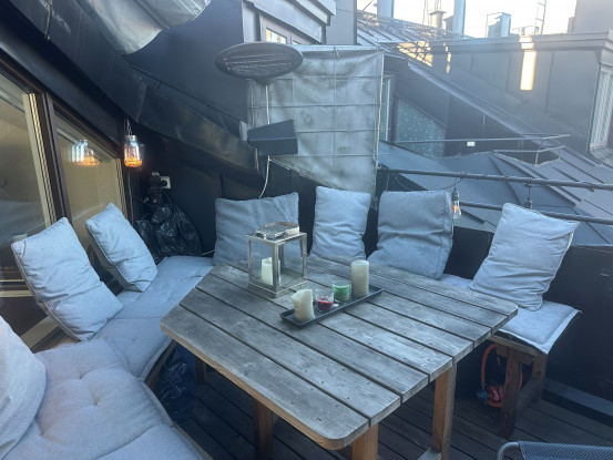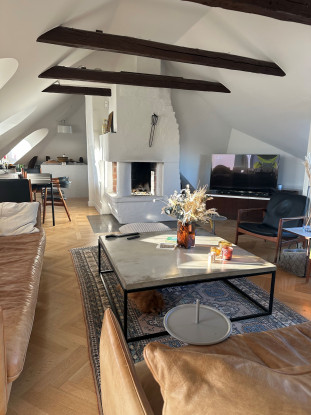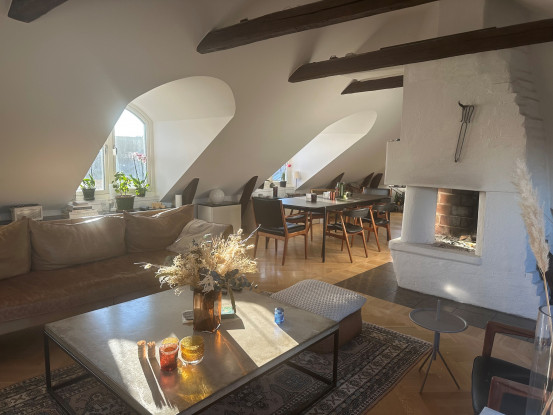 Vindsvåning om 99+16 kvm med tre sovrum och takterrass belägen centralt på Östermalm. Uthyres möblerad endast till företag.