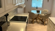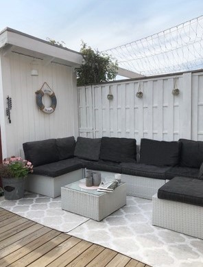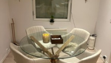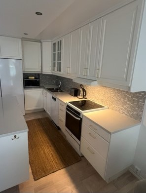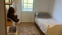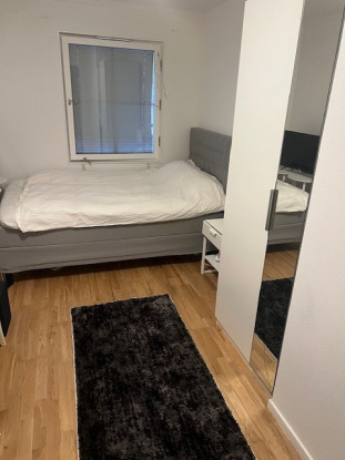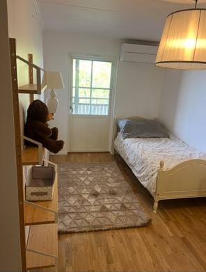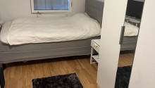 Radhus i Huddinge om 97 kvm med tre sovrum, två badrum och tomt med altan samt garage. uthyres möblerad endast till företag.