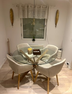 Omgivning: Belägen i ett lugnt radhusområde i Huddinge med närhet till grönområden, skolor, förskolor, idrottsanläggningar och livsmedelsbutik.