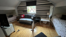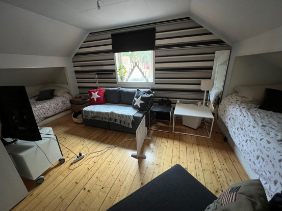 Villa om 140 kvm fördelat på tre våningar och tre sovrum i Upplands Väsby. Uthyres delvis möblerad endast till företag och ambassader.
