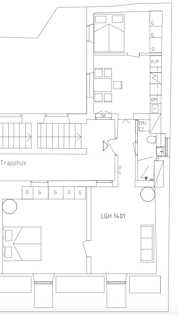 Nyrenoverad (2025) våning om 64 kvm med två sovrum belägen i Gamla Stan. Uthyres omöblerad/delvis möblerad endast till företag och ambassader.