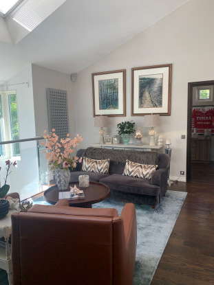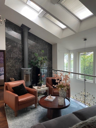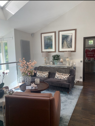 Villa fördelat pÃ¥ tvÃ¥ vÃ¥ningar om 182 + 42 kvm med nedervÃ¥ning som har en öppen planlösning med ett exklusivt Poggenpohl-kök utrustat med granitbänkar och en praktisk köksö. Vardagsrummet är nedsänkt och har ett separat TV-rum för extra komfort. PÃ¥ övre plan finns ett rymligt allrum med ryggÃ¥stak, takfönster och en mysig braskamin. Huset erbjuder fyra sovrum, varav ett är omvandlat till en rymlig walk-in closet. TvÃ¥ badrum finns, där masterbadÂrummet är nyrenoverat och har en elegant bastu. Hemmet är utrustat med Sonos ljudsystem och inbyggda högtalare i taket, inklusive bastun och utomhus.