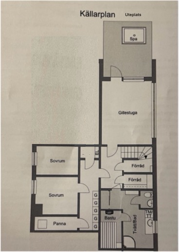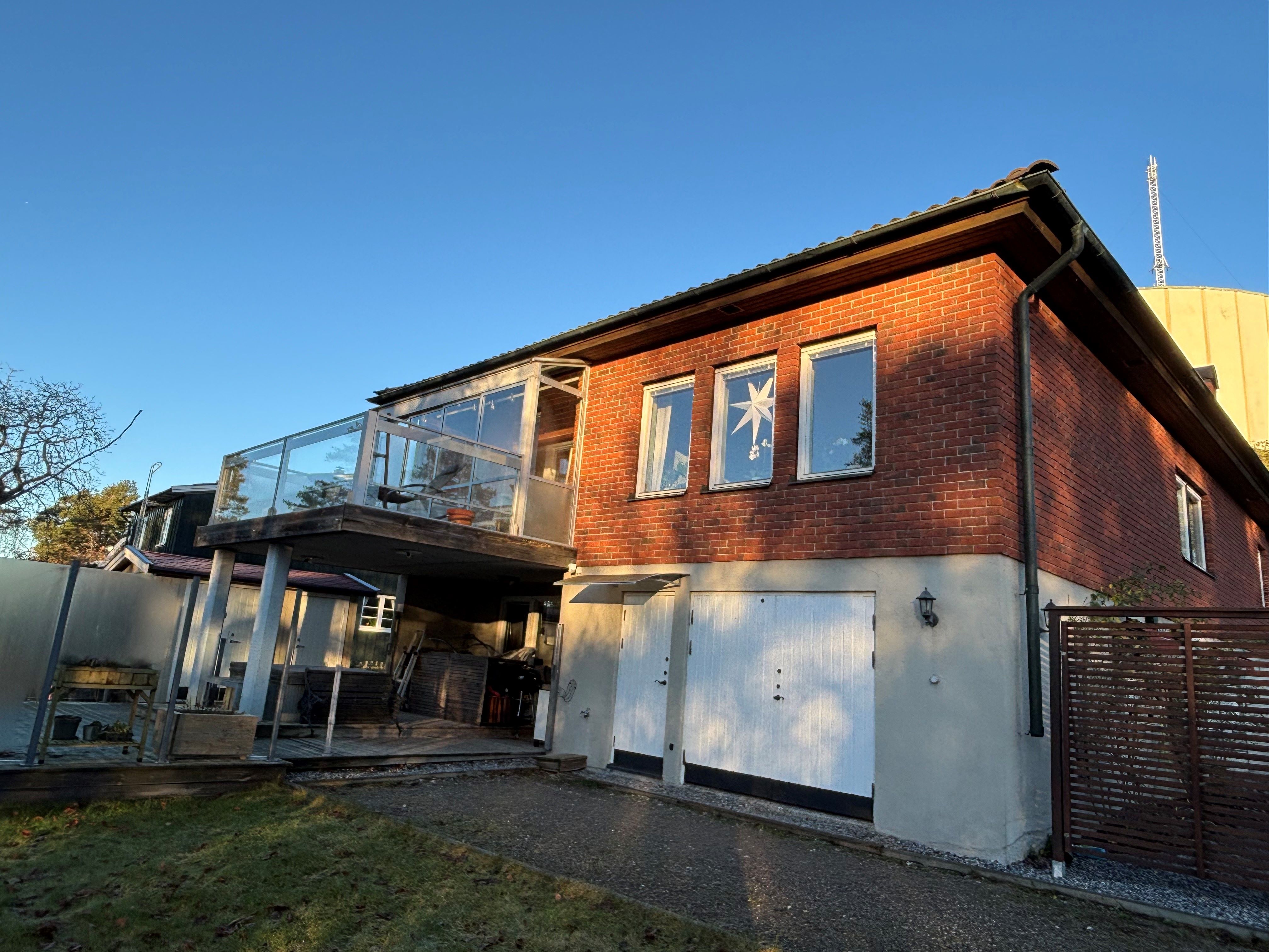 Villa om 200 kvm fördelat på två våningar. Övre plan med stor hall, mycket stort vardagsrum, kök samt två sovrum och ett arbetsrum. Nedre plan med vardagsrum, två sovrum, badrum, bastu och tvättstuga, samt pannrum/el. Uteplats/altan med SPA. Stor trädgård. På övre plan även en balkong. Se även bild på planlösning.