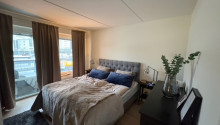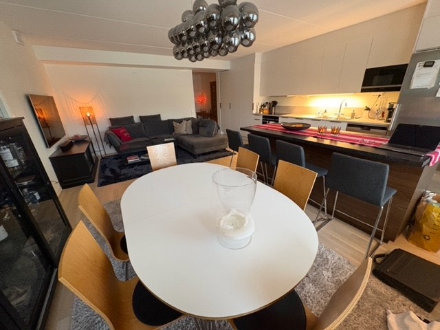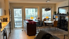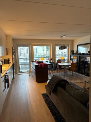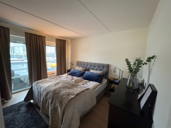 Lägenhet om 74 kvm med öppen modern planlösning som har ett kök med köksö och vardagsrum, totalt ca 40 kvm. Stort master-bedroom med badrum och garderober samt utgång till balkong. Möblerbar hall med badrum som har tvättmaskin och torktumlare samt mindre sovrum/kontor.