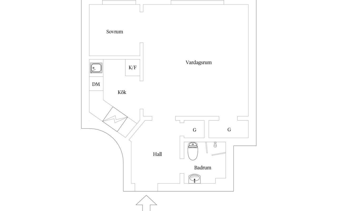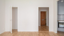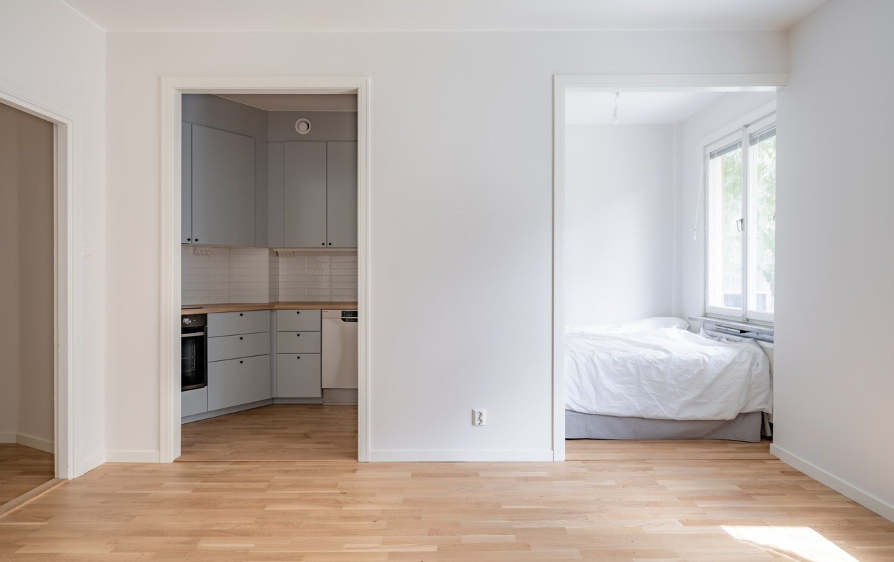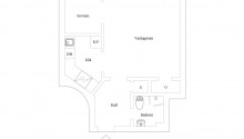 Planlösning: Genomgående ljusa interiörer samt trägolv. Ljust och luftigt sällskapsrum med stort fönsterparti. Ett sovrum. Badrum med dusch.