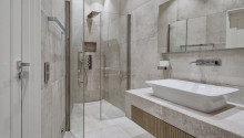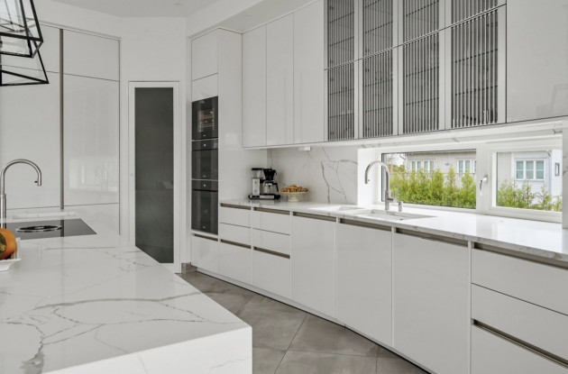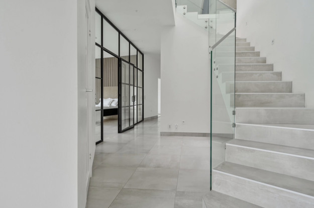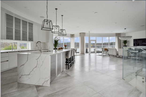 Planlösning: Exklusiv villa i sutteräng i två plan om 318 kvm. Övre plan erbjuder stor öppen planlösning med ett fullutrustat kök och köksö mot vardagsrum med stora sällskapsytor och matsal. Generös takhöjd med heltäckande glaspartier med härligt ljusinsläpp och utsikt över vattnet. Stort master bedroom-svit med badrum och platsbyggd walk-in-closet.