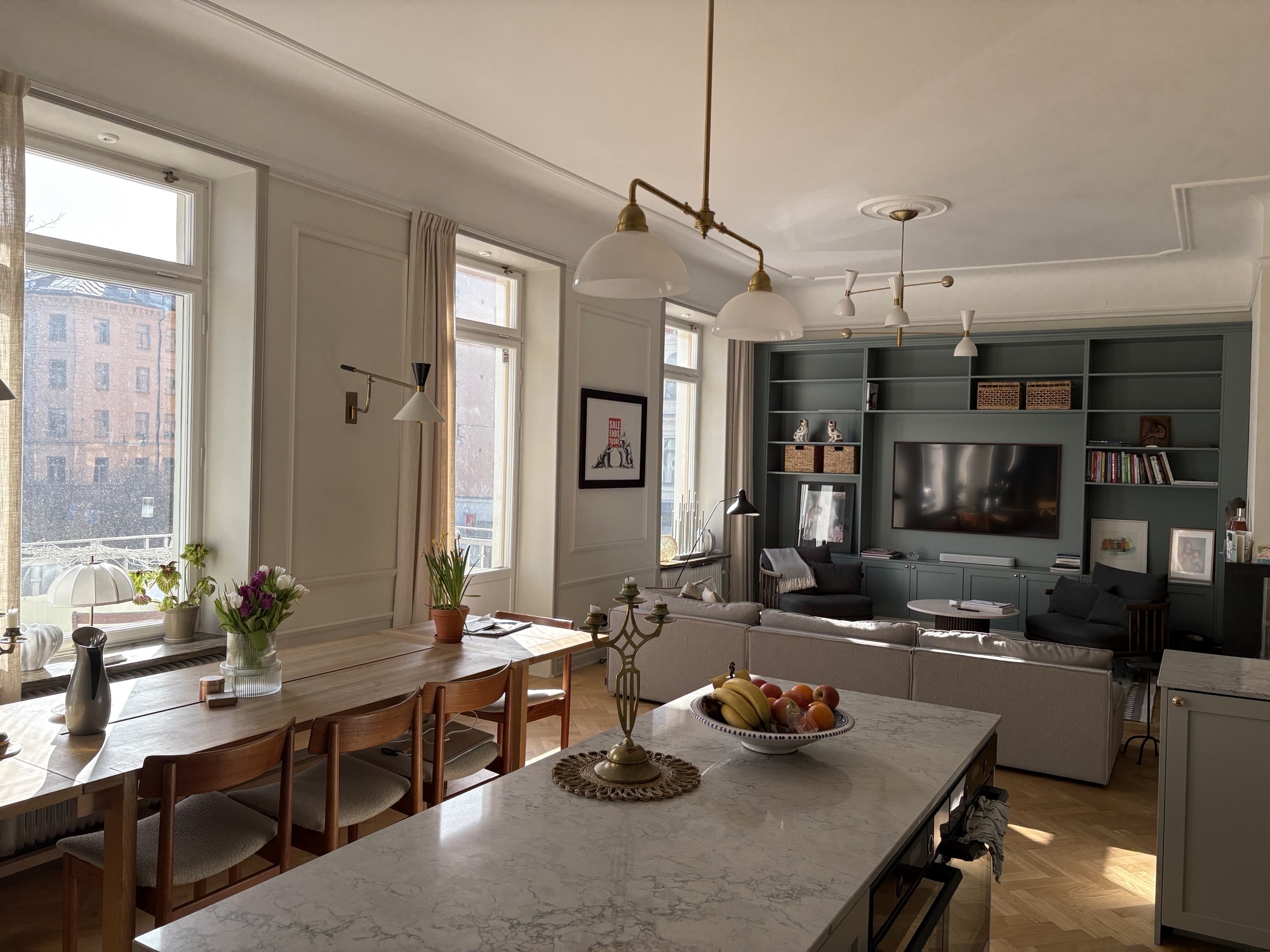 Unik lägenhet intill Tegnérlunden om 175 kvm med balkong mot park, fyra sovrum och två badrum. Uthyres flexibelt möblerad endast till företag och ambassader.