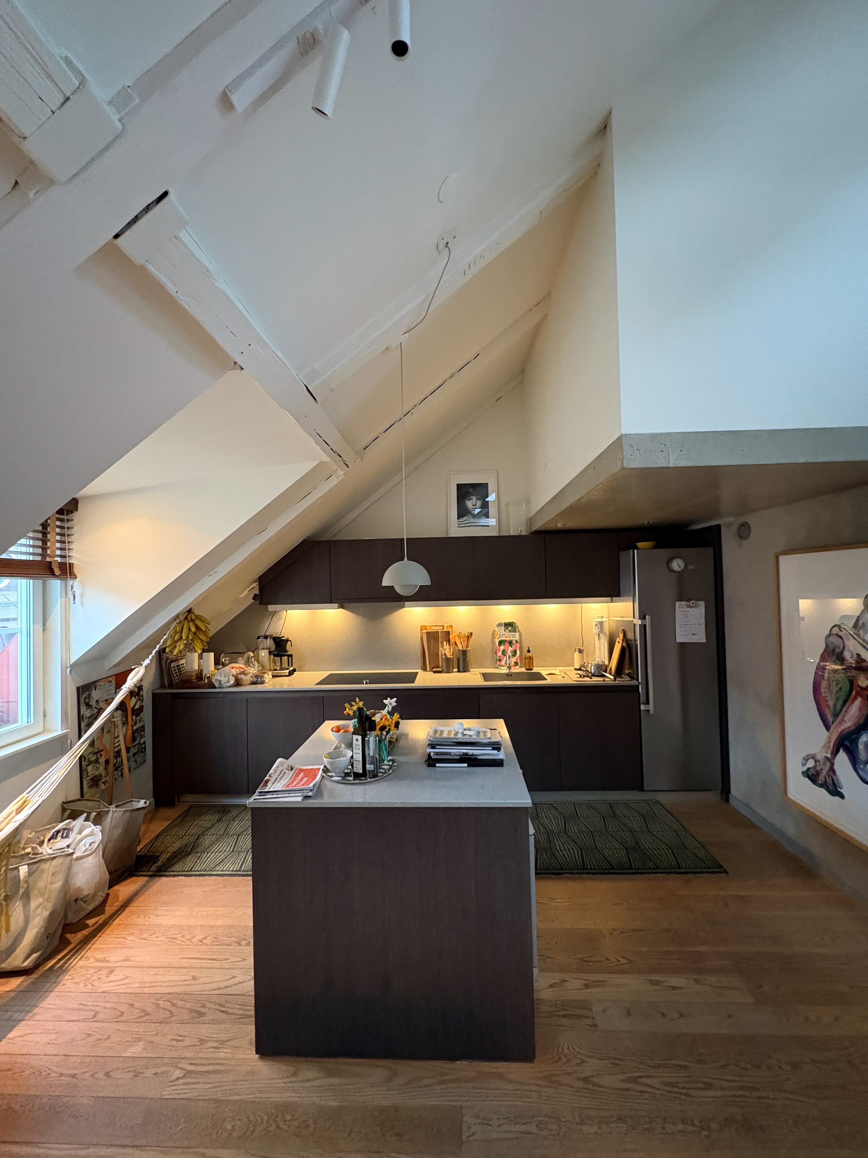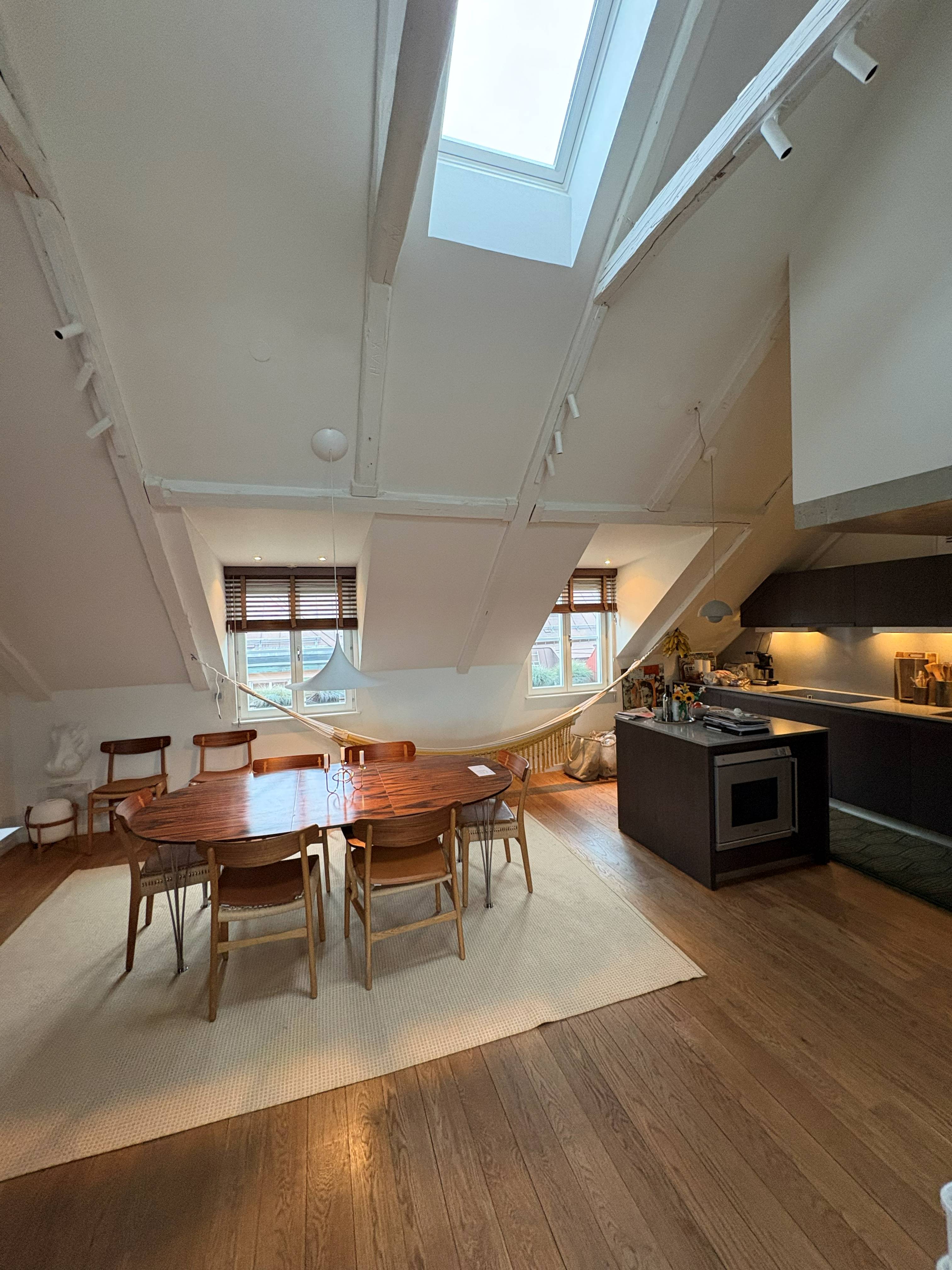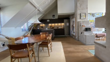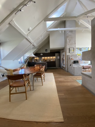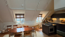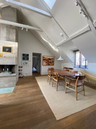 Fin vindsvåning mitt i Stockholms city om 130 kvm med upp till fyra sovrum. Uthyres möblerad endast till företag och ambassader.