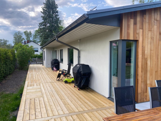 Fin villa i Tyresö om 133 kvm med tre sovrum och härlig tomt med altan. Uthyres delvis möblerad endast till företag och ambassader.