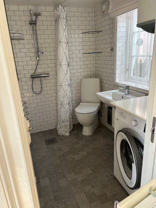Villa fördelat på 1,5 våningar om 122+5 kvm med upp till fyra sovrum, kök, vardagsrum, tre badrum med, dusch, badkar och tvättmaskin. Tomt med ett attefallshus och uppfart för flertalet bilar.